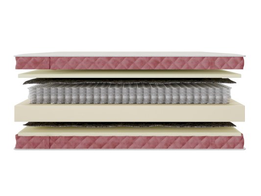 • Слои накладываются друг на друга, и даже человек крупной комплекции не сможет «продавить» матрас, чтобы ощутить ортопедический пружинный блок