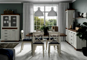 Коллекция MARSELLE - изысканная простота прованса. Светлые фасады со шпросами, массивные карнизы темного дерева – все это смотрится очень элегантно и аутентично.