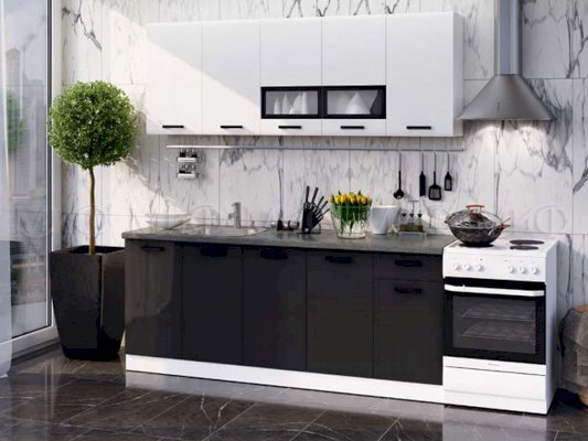 С помощью черного и белого цвета есть возможность создать неповторимый и яркий интерьер. Такая цветовая гамма отличается сдержанностью и благородством. Воздушный белый верх и основательный черный низ зрительно разделяют кухню на разные зоны. Современная кухня "Рио" черная - это комфорт, надежность и гарантия.