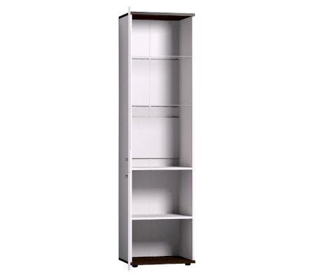 Шкаф для посуды Норвуд 13 - этот модуль создан для красивой посуды, хрупких сувениров. Высокий и узкий шкаф-пенал будет уместен в гостиной любых размеров. Фигурный фасад верхней витрины эффектно совмещает в себе тонированное стекло, ЛДСП и контрастную вставку в цвете Орех Шоколадный. Стеклянные полки из прозрачного стекла толщиной 6 мм. Благодаря модулю Подсветка ADELE 87, которую можно докупить отдельно, теплый свет будет приятно подсвечивать посуду в витрине. В нижнюю закрытую тумбу посудного шкафа можно убрать вещи, не предназначенные для посторонних глаз. Фасады шкафа перевешиваются на левую и правую сторону.
