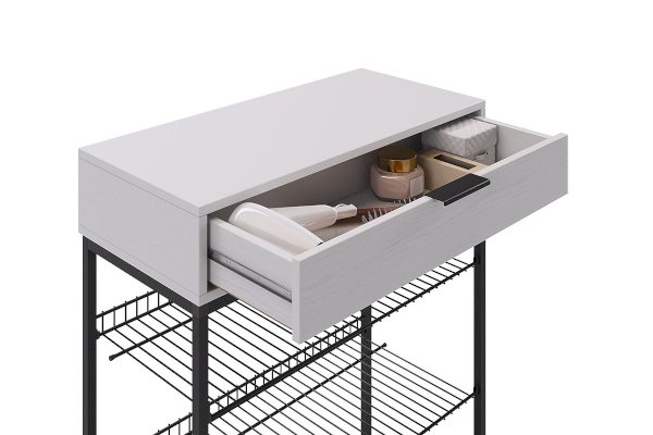 Модная консоль для обуви в стиле Лофт из алюминевого профиля, легкая. На 2-е съемные полки для обуви и эва коврик входит 12 пар обуви. Сотовые полки расположены горизонтально, благодаря этому можно разместить на полках обувь и любые коробки для хранения функциональных мелочей. Задний бортик сотовых полок защитит стену от загрязнений. Обувница компактная и функциональная, поместится в любой прихожей, а разместив над обувницей зеркало, ее можно использовать как трюмо. В выдвижном ящике на шариковых направляющих поместятся много полезных мелочей: фен, расчески, средства для чистки обуви и другие предметы. Ящик открывается с помощью стильной металлической ручки-профиля. Регулируемые опоры позволят скомпенсировать неровности пола. Эва коврик входит в комплект обувницы, убережет ваш пол от загрязнений и позволит подошве оставаться всегда сухой. Изделие не разборное, сборка алюминевой конструкции одноразовая.