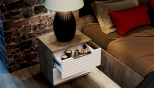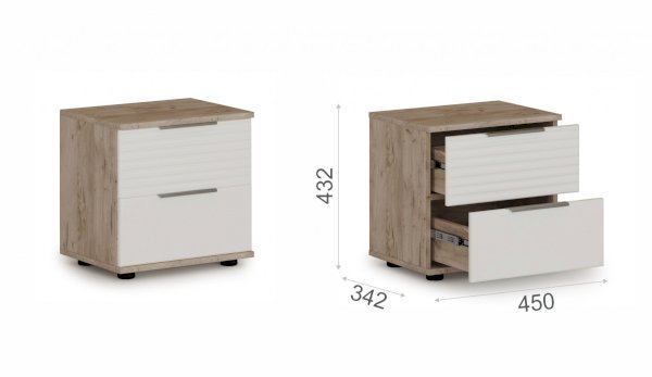 Прикроватная тумба Джулия - представитель европейского стиля минимализм. Декором белым глянцевым фасадам High Gloss служит фрезерованный рисунок «Волна» - подчеркивает зеркальный блеск, делает интерьер спальни особенным и неповторимым. Торцевые ручки из хромированного металла - яркий акцент фасадов. Тумба с ящиками на телескопических направляющих - поместит в себя все вещи, которые важно иметь под рукой - телефон, светильник или любимая книга. Идеально компонуются со всеми модулями системы Джулия.