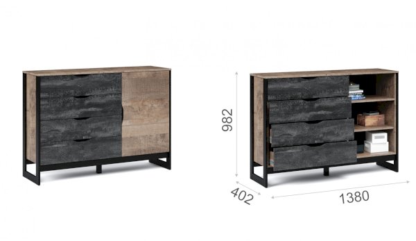Комод 1 дверца и 4 ящика Стокгольм (Империал)