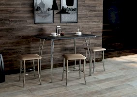 Столешница выполнена в цвете Софт светлый, сидушка - экокожа коричневая