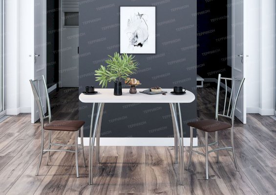 Светлая отделка и простые формы стола обеденного №3 отлично сочетаются с современными интерьерами. Модель гармонично вписывается в обеденные зоны в стилях хайтек и минимализм. Столешница со слегка закругленными углами изготовлена из качественной МДФ. Материал устойчив к влаге и высоким температурам. Изогнутые металлические ножки придают изделию легкость и изящество.