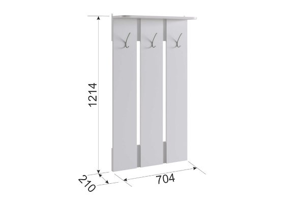 Состоит из: крючков для сумок и одежды, полки для головных уборов. Изделие симметричное.