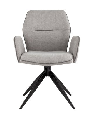 Мягкий стул со спинкой анатомической формы и удобными подлокотниками подарит комфорт и уют. Тканевая обивка оформлена декоративным кантом. Прочные ножки изготовлены из металла в черном цвете, поэтому обеспечивают хорошую устойчивость и делают стул оригинальным. Подпятники на ножках препятствуют скольжению и помогут защитить напольное покрытие от царапин. Изделие будет прекрасно смотреться как отдельный предмет мебели, так и в комплекте с обеденным или письменным столом.