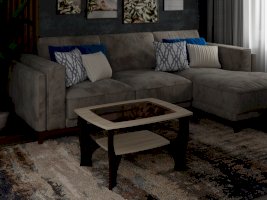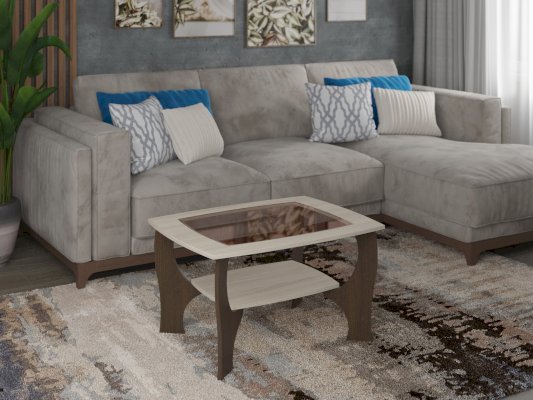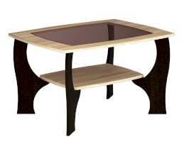 Стол журнальный станет прекрасным украшением интерьера. Столешница оснащается вставкой из тонированного стекла. Фигурные ножки прикрепляются к столешнице и небольшой круглой полочке.