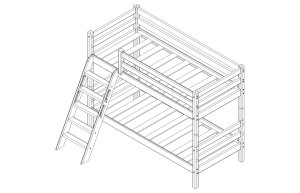 В состав варианта входит: Пакет № 1 базовый, кол-во 1 шт. Пакет № 2 латы, кол-во 1 шт. Пакет № 3 задняя защита от падения, кол-во 3 шт. Пакет № 4 передняя защита 1/4, кол-во 1 шт. Пакет № 12 опоры для низкой кровати, кол-во 1 шт. Пакет № 14 наклонная лестница для низкой кровати, кол-во 1 шт.