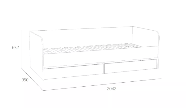 Односпальная кровать  подходит для детской мальчиков и девочек в современном, скандинавском и стиле лофт. В кровати предусмотрены ящики для хранения постельного белья или игрушек. Натуральный материал ламелей не вызывает аллергии и безопасен для здоровья. Изогнутая форма ламелей придает основанию спального места большую прочность и дополняет ортопедические свойства матраса.