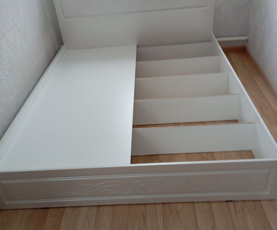 Кровать шикарная! Цвет безумно красивый, жемчужный. Пришла без изъянов, хорошо упакована. Со своим размером 160х200 в небольшой комнате не выглядит огромной. Собирается очень легко.