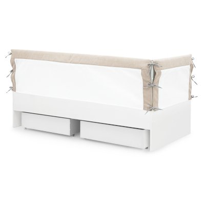 Чтобы не бояться, что ребенок упадет с кроватки, можно приобрести дополнительный съемный бортик.
