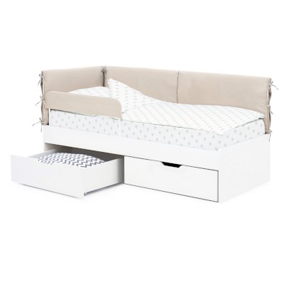 Для удобства хранения игрушек или постельных принадлежностей, вы можете приобрести 2 вместительных ящика, которые устанавливаются под основание кровати.