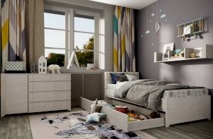 Наполнение: 3 больших + 2 маленьких выдвижных ящика + шкафчик