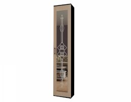 Пенал представлен в двух исполнениях – со вставками из эко кожи и с зеркалом (зеркало с пескоструйной обработкой). В центральной секции верхние створки устроены по принципу купе.