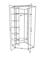 Угловой шкаф -практичная система хранения, позволяющая рационально использовать внутреннее пространство мебели для размещения всего необходимого. Наполнение шкафа состоит из секции с полками  и штанги для одежды. В некоторых зонах шкафа можно хранить крупно габаритные вещи.