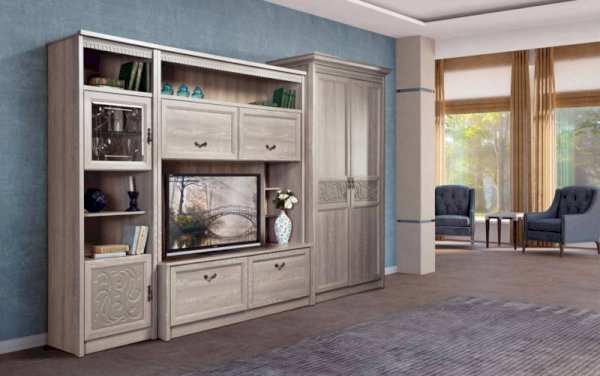 Классическая серия «Лючия» включает 12 модулей для гостиной и кабинета. Запоминающийся облик коллекции «Лючия» обеспечивают оригинальные дизайнерские приёмы: торцевые и внутренние модули-колонны, сложная радиусная гравировка и фигурная фрезеровка в сочетании с объемными декоративными элементами. Мебель оснащена надежной немецкой фурнитурой «Hettich» и роскошными итальянскими ручками подсостаренное золото, что является несомненным плюсом ко всем ее достоинствам.