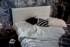 Четкость и лаконичность линий, белоснежный цвет каркаса кровати в сочетании с вставками из экокожи делают модель одновременно стильной и универсальной.