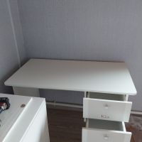 Письменный стол имеет просторную столешницу и два выдвижных ящика полного выдвижения. Оптимальный вариант для оформления удобного рабочего пространства.