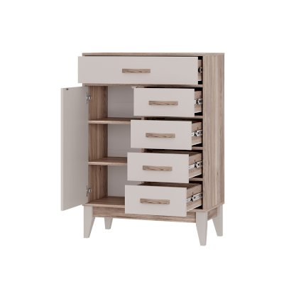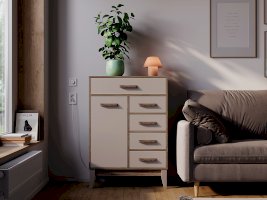 Комод «Скандика» КмМ-13 – это компактная, но вместительная модель для гостиной или спальни. Благодаря вытянутой форме комод можно разместить на небольшом пространстве – например, возле дивана. Комод укомплектован четырьмя ящиками и отсеком с дверцей. В этой модели можно организовать несколько зон хранения, в ней поместятся и мелочи для рукоделия, и документы, и одежда. Створка плотно фиксируется на магнитах.