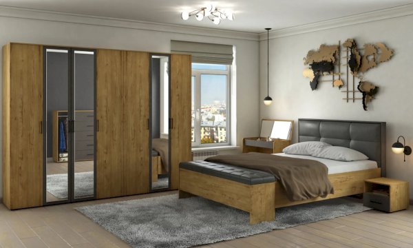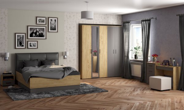 Ортопедическая решетка и ортопедическая решетка с подъемным механизмом и большим бельевым ящиком; большие зеркальные шкафы, несколько видов комодов, один из которых с открытой штангой, и небольшой туалетный столик помогут вам создать функциональную и индивидуальную спальню.