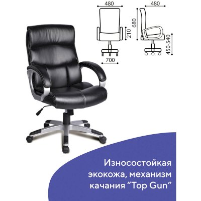 Классическое эргономичное кресло с обивкой из экокожи и контрастной отстрочкой впишется в любой кабинет благодаря своему классическому дизайну. Доступное, качественное кресло среднего ценового сегмента.