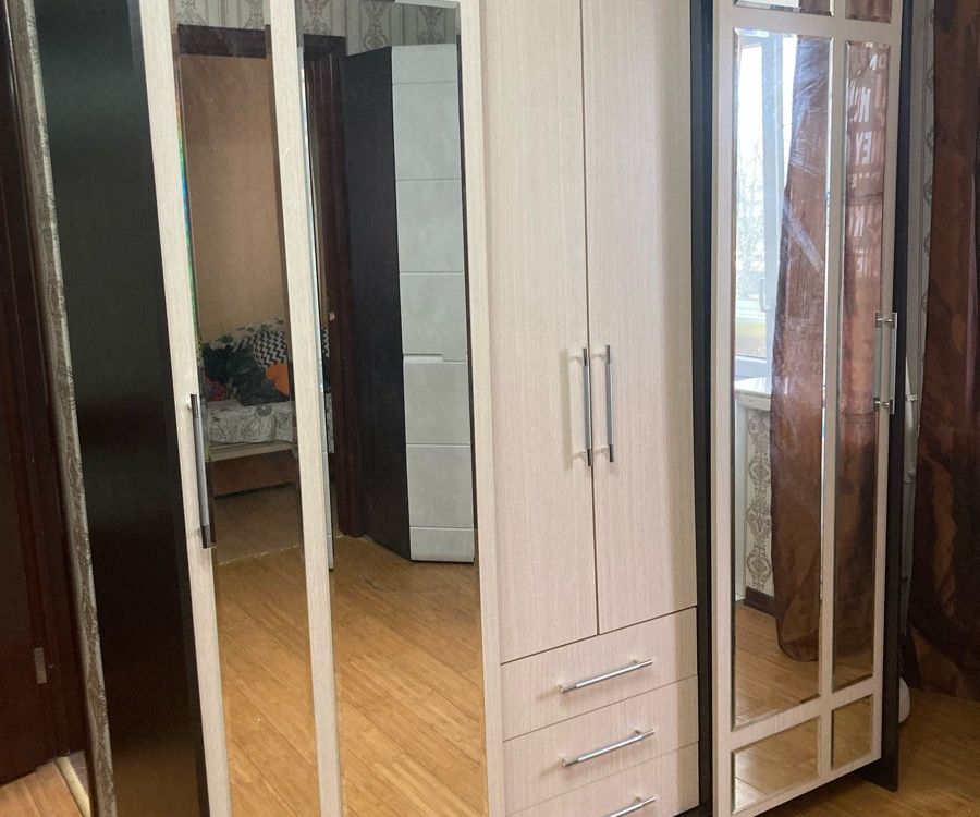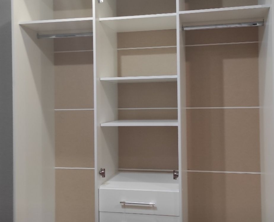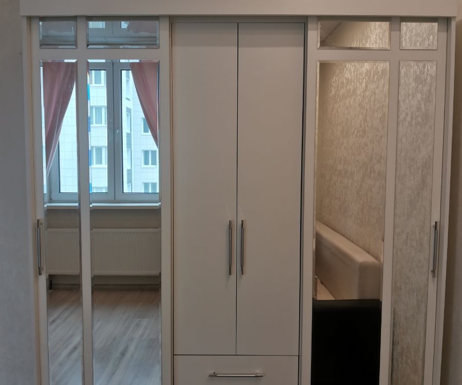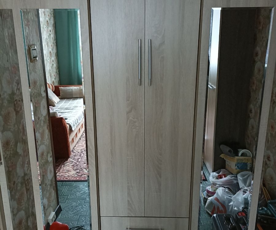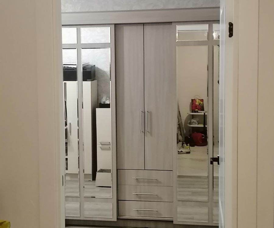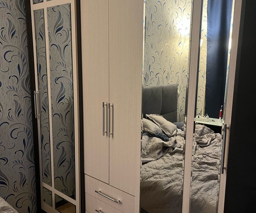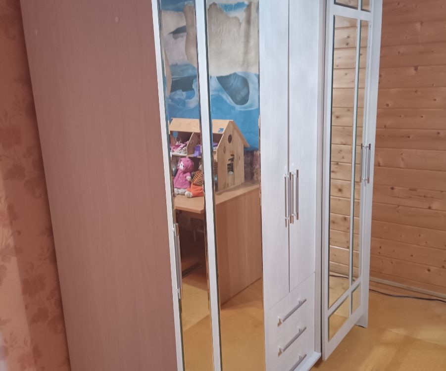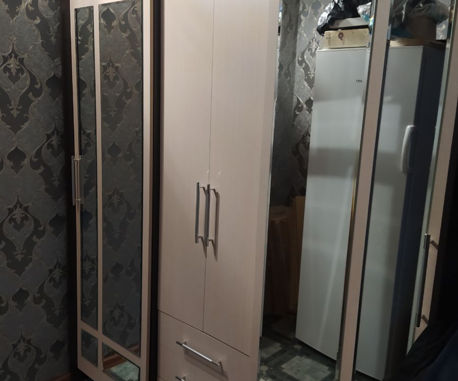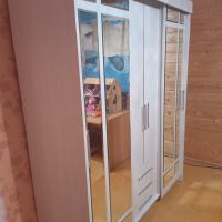 очень удобный многофункциональный шкаф купе с доп полками и выдвижными ящиками который ращделяется на три части что позволяет хранить вещи более удобнее