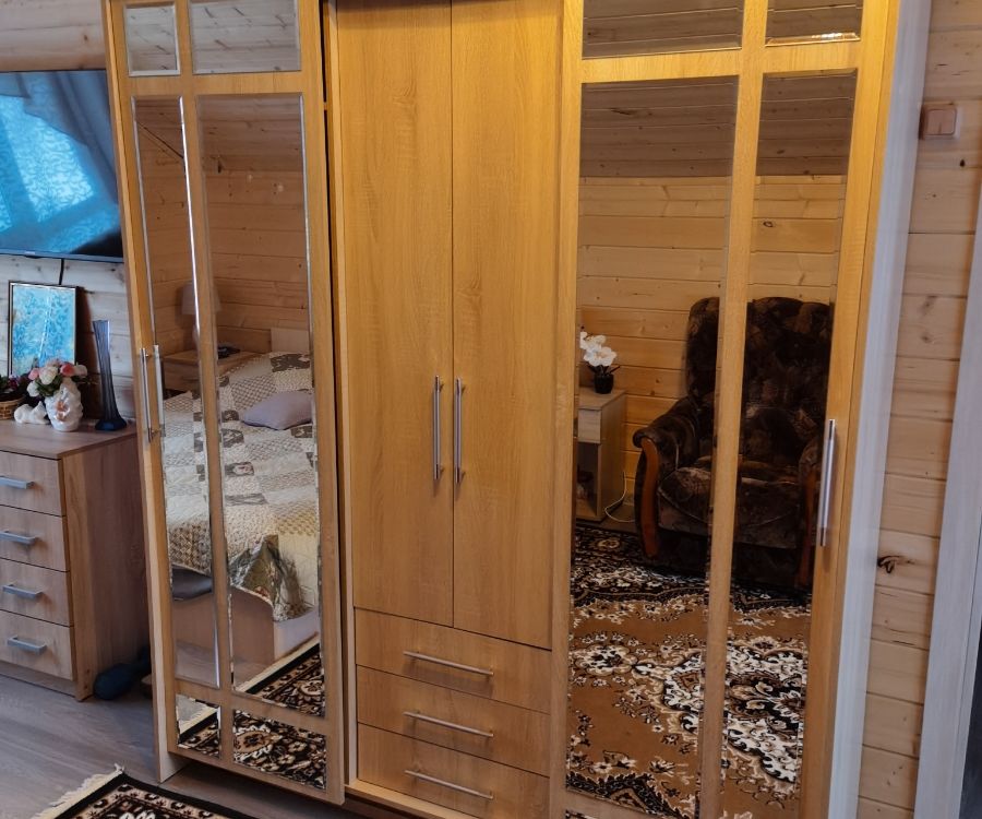 Шкаф очень красивый, вместительный, муж собрал быстро. Заменили ручки