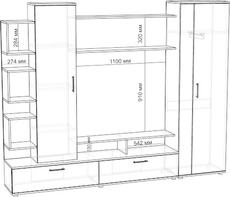 | Функционал | хранение одежды / хранение посуды / зона для ТВ |