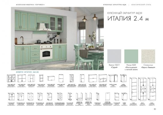Модульный кухонный гарнитур Италия (Террикон) - за 65 462 руб. в Троицке. Купите на сайте troick.onlinemarketmebeli.ru или по телефону 8(800)505-30-63 уже сегодня! Уточнить наличие, комплектацию, актуальную цену можно бесплатно у менеджера ежедневно. Закажите Модульный кухонный гарнитур Италия (Террикон) до конца акции! Доступна покупка в кредит, рассрочку. Доставим со склада или на заказ.