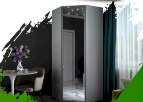 Белый снег Монолитный и обтекаемый угловой шкаф Экспресс отличается самой доступной ценой в сегменте.