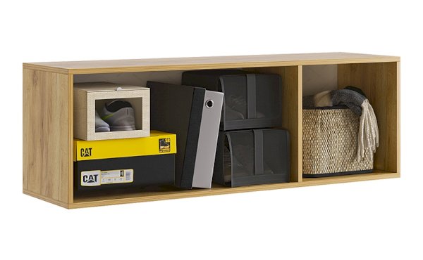 Еще одно интерьерное решение, антресоль может быть консолью. Перевернув фасады и закрепив антресоль на небольшой высоте от пола, Вы получаете стильную и функциональную тумбу для хранения парящую в воздухе. Это удобное решение, если у Вас дома есть робот-пылесос.