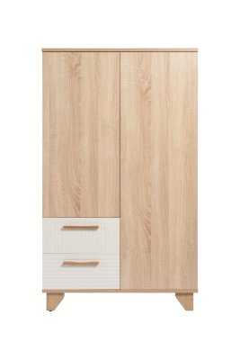 Створки оснащены петлями с доводчиками, ящики — шариковыми направляющими полного выдвижения и ручками из натурального массива дуба. В конструкции стеллажа предусмотрен механизм открывания нажатием «push-to-open».