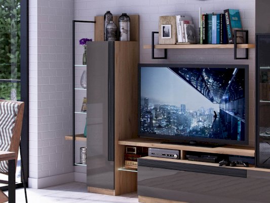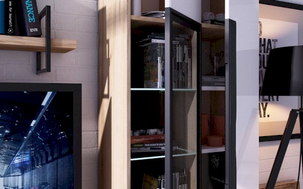 Материал корпуса: ЛДСП 16 мм, Стекло прозрачное закаленное 4 мм, Металлические декоративные элементы
