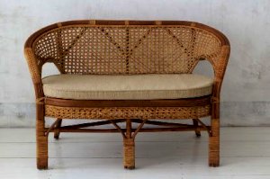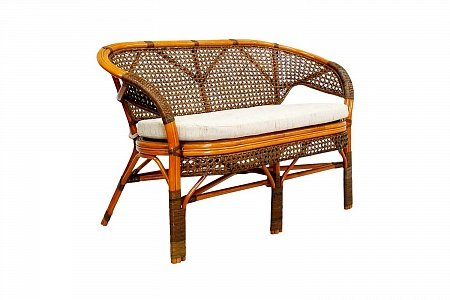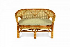Двухместный диван из ротанга с подушкой.