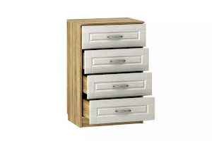 Комод Оливия НМ 040.38 X имеет компактные габариты и не займет много места в детской или спальне. Четыре вместительных ящика позволят рационально разместить внутри модуля постельные принадлежности и белье.