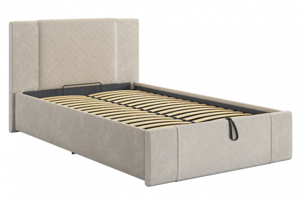 Доступны четыре цветовых варианта - галька, крем, латте и нежно-розовый. Чехол на бортах и изножье кровати съемный, что обеспечивает легкость ухода и возможность экспериментировать с цветовыми решениями.