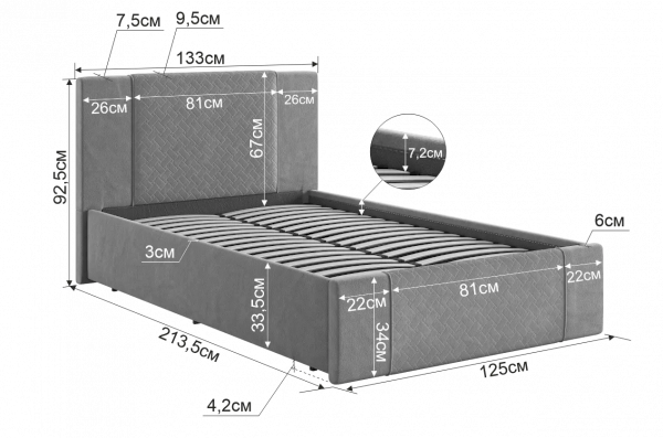 Углубление под матрас: 6 см