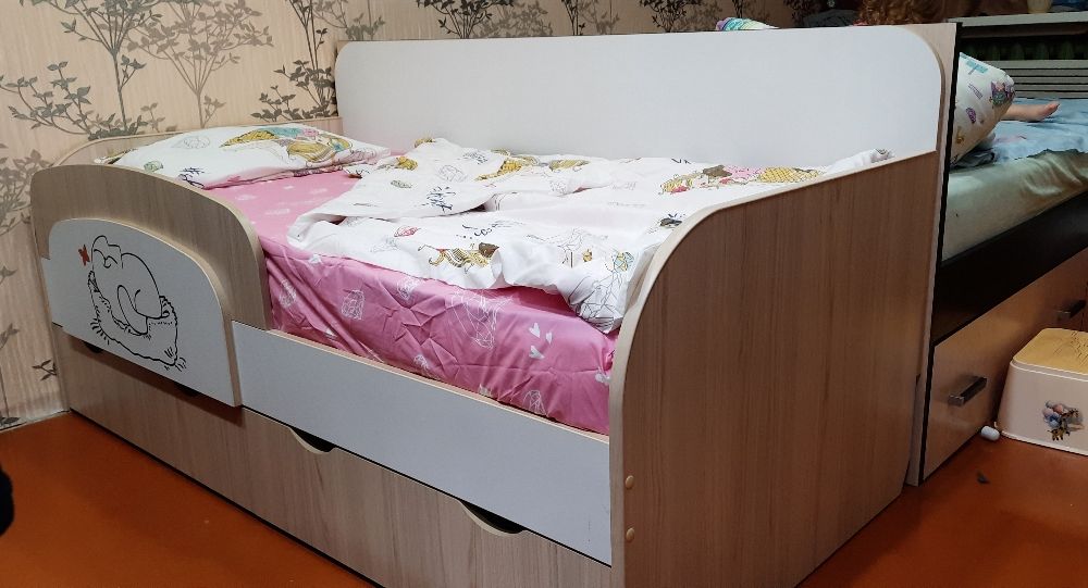 Долго искали кровать, остановились на этой модели. Понравилась по цене и то, что есть встроинные ящики. Купили и не прогадали) Очень хорошая кровать, ребенок в восторге. Сделана качественно, с вместительными крепкими ящиками для постельного или игрушек, бортиками, милой кошечкой! Очень довольны, рекомендую!