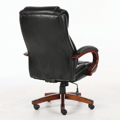 Удобное, стильное кресло с деревянными элементами и обивкой из высококачественной рециклированной кожи с расширенной гарантией 24 месяца. Качественное, надежное кресло премиального сегмента.