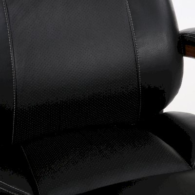 Обивка кресла выполнена из рециклированной кожи - современного материала, созданного из измельченных частиц натуральной кожи. По эластичности и прочности рециклированная кожа максимально близка к натуральной. Материал хорошо пропускает воздух, что положительным образом сказывается на комфорте во время эксплуатации. Рециклированная кожа износоустойчива, кресло способно сохранять привлекательный внешний вид длительное время. Перфорация в центральной части кресла способствует дополнительной циркуляции воздуха.