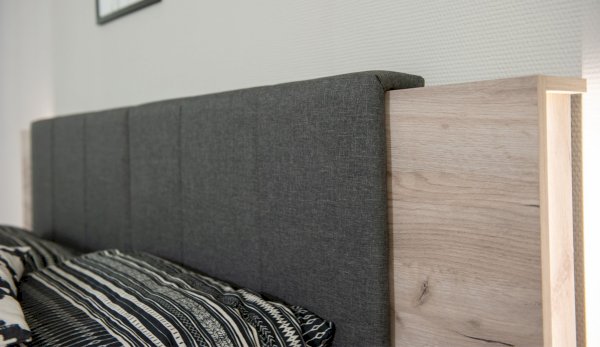 «Парящая в воздухе» кровать Джулия – это новинка современного рынка, выполнена в простых и лаконичных формах. Комбинированное изголовье из ЛДСП с мягкой накладкой - удобная, уютная и красивая деталь дизайна, позволит комфортно проводить время в кровати. Рамка из МДФ по краям со светодиодной подсветкой служит дополнительным освещением в ночное время и создает романтическое настроение. Надежный каркас кровати с трапециевидными ножками, расположены ближе к центру конструкции и практически не видны создают «эффект парения», светодиодная подсветка по периметру кровати усиливает эффект невесомости. Кровать с ортопедическим основанием на металлическом стальном каркасе и газовых лифтах.