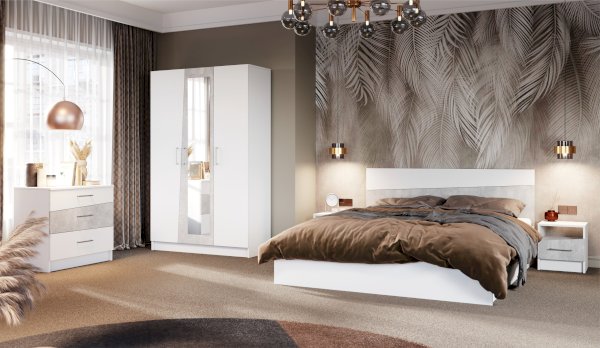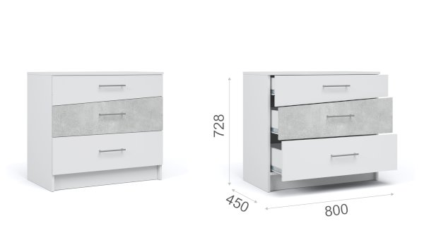 Вместительный комод Антария из ЛДСП с асимметричными скошенными линиями фасадов вносит свободу и движение в жилое пространство, делает интерьер более сложным и необычным. Нейтральные цвета декора универсальны для любого стиля интерьера. Три выдвижных ящика на роликовых направляющих поместят в себя одежду, личные вещи и аксессуары. Верхнюю крышку можно использовать для декора или фотографий. В спальне он легко превращается в туалетный столик, достаточно повесить над ним зеркало.