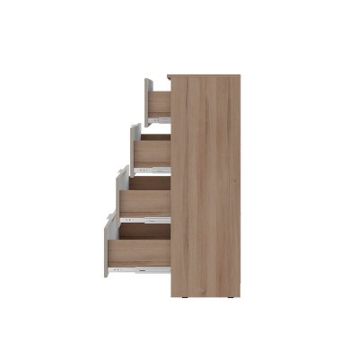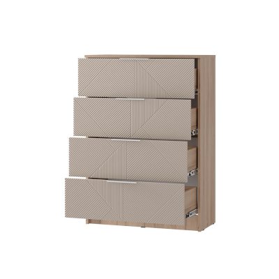 Комод "Эмилия" КМ-02 обладает четырьмя просторными ящиками для одежды и белья. Благодаря эргономичным фасадам открывание ящиков становится удобным и лёгким.