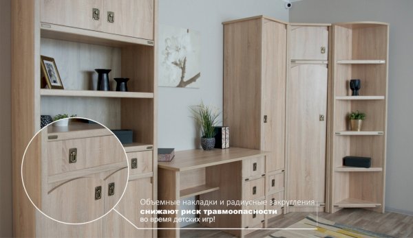 Детская Валенсия - отличное решение для детей любой возрастной категории. Все модули этой системы максимально функциональны и вместительны. Разнообразие модулей позволит Вам подобрать оптимальный комплект. Декоративные элементы создают яркий морской стиль этого комплекта. В этой модели предлагается более компактное решение двуспальной кровати, чем многоярусная кровать, съедающая слишком много пространства. При этом есть возможность превратить кровать в диван. Жемчужина модели – сундук. При относительно демократичной цене в комплекте использованы высококачественные материалы.