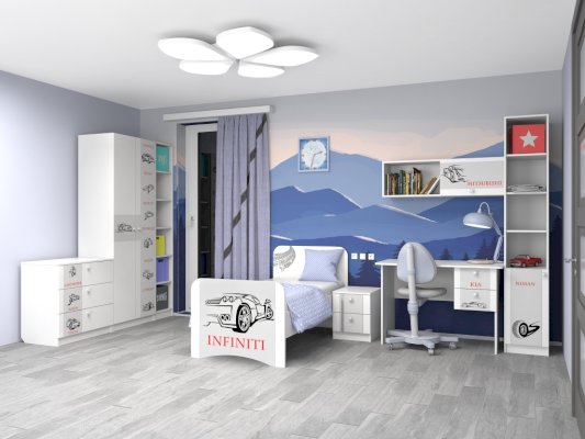 Цвет: Белый с фотопечатью Машинки