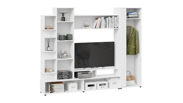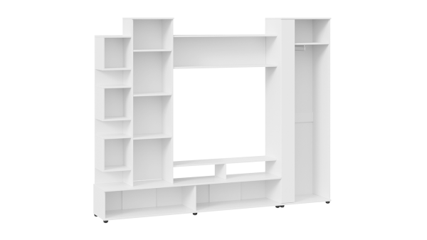 Изделие имеет максимально продуманную конструкцию – шкаф с полками, шкаф с выдвижной штангой, шкафы с откидными дверцами и открытые полки. Это делает «Дакоту» невероятно функциональной при своих небольших габаритах.