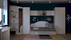 Кровать с ящиками и мягким изголовьем Юниор ГиП-14 (Марибель)