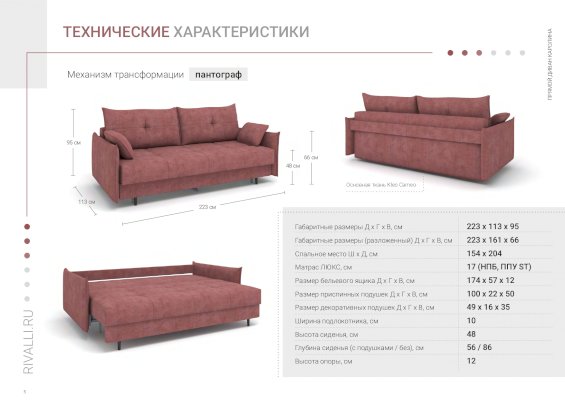 | Материал обивки | рогожка / ткань (текстиль) |