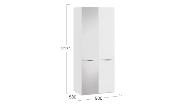 Шкаф для одежды с 1 зеркальной и 1 дверью со стеклом Глосс СМ-308.07.213 (Трия)